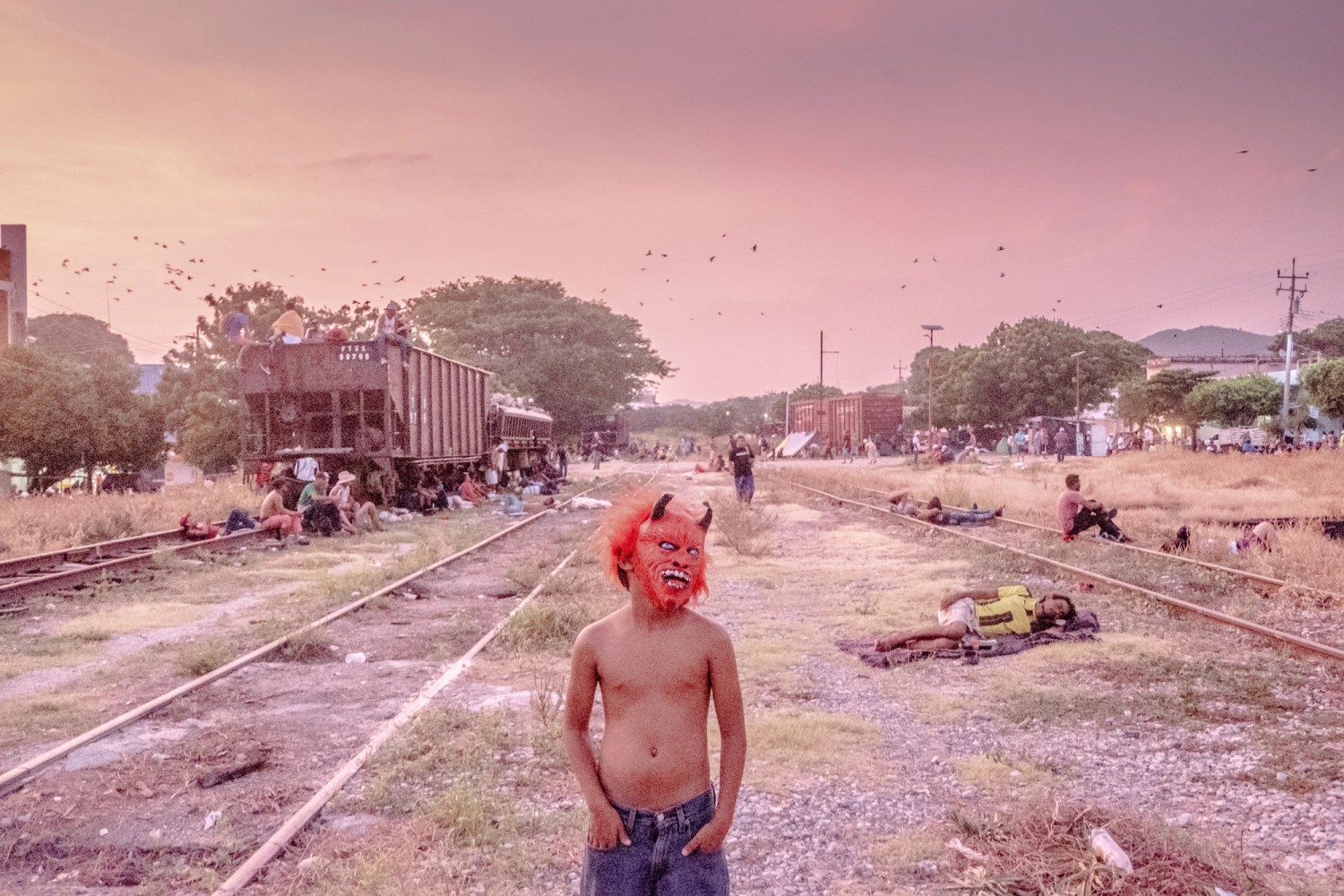 Un niño hondureño juega cerca de las vías del tren en Arriaga, Chiapas, en el sur de México. La migración centroamericana es multifactorial, originada por las guerras civiles de los años 80, la violencia actual de las pandillas modernas, la pobreza, los gobiernos autoritarios y el cambio climático.